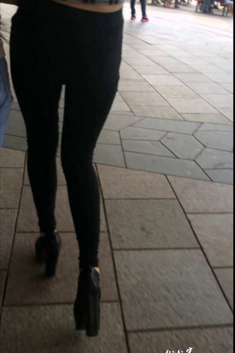 [街拍客视频]jx0700 黑色紧身裤露脐装极品美女